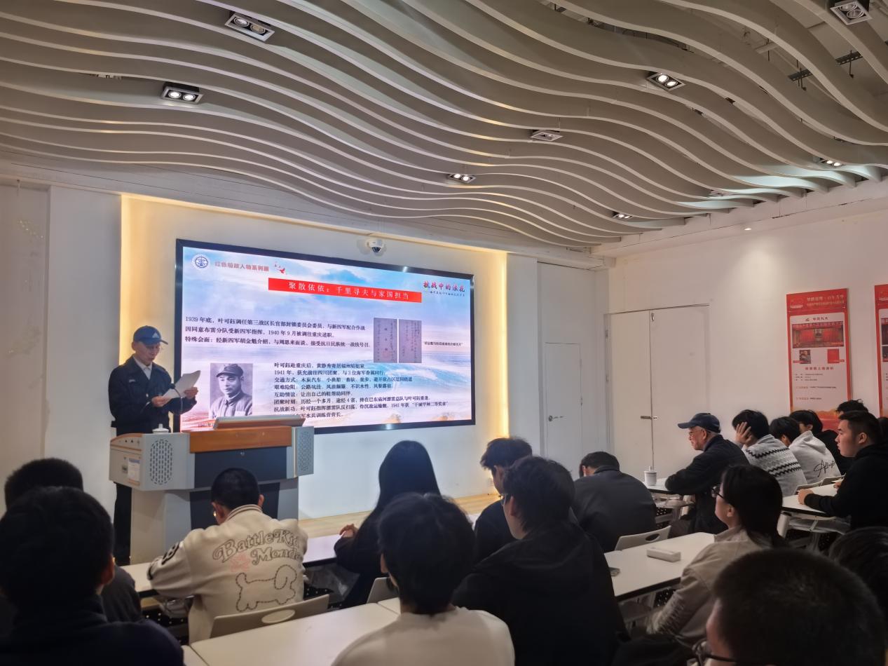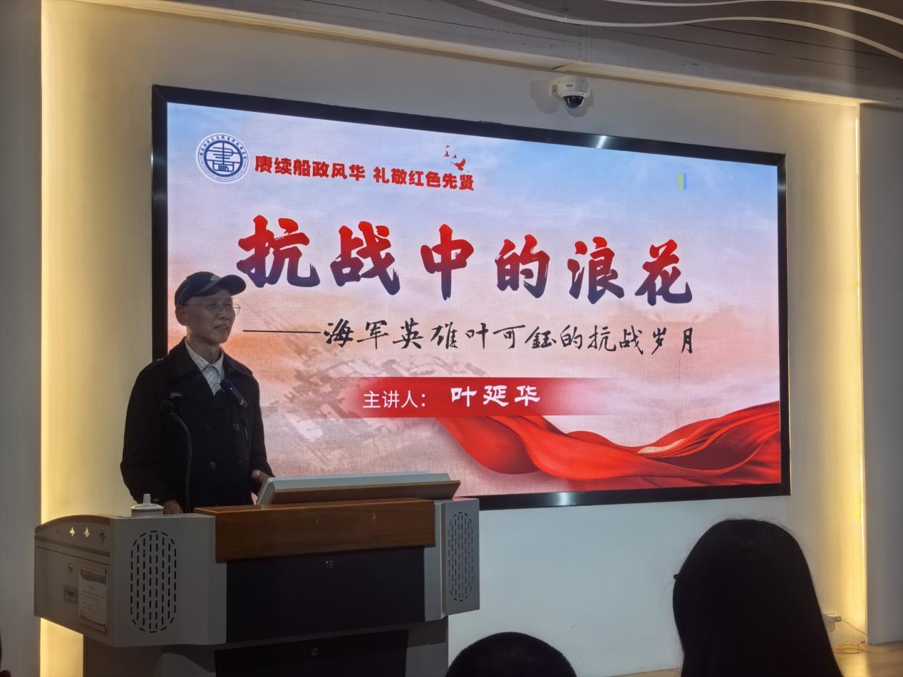 活動中,葉延華為師生帶來專題講座《抗戰(zhàn)中的浪花——海軍英雄葉可鈺的抗戰(zhàn)歲月》,深情講述其父在民族危亡之際挺身而出、以身許國的英雄事跡。