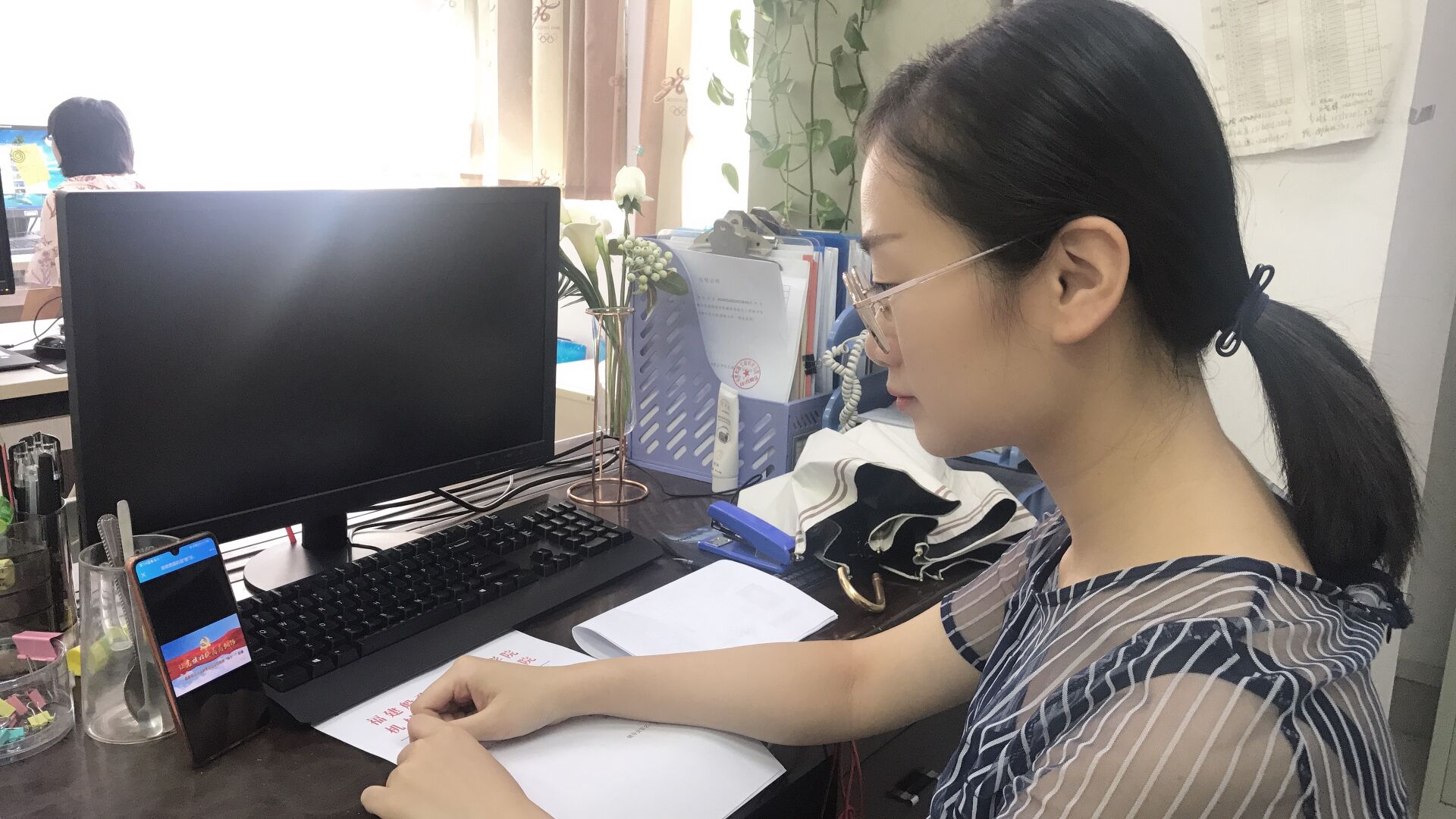 黨員同志們認(rèn)真觀看學(xué)習(xí)微黨課。