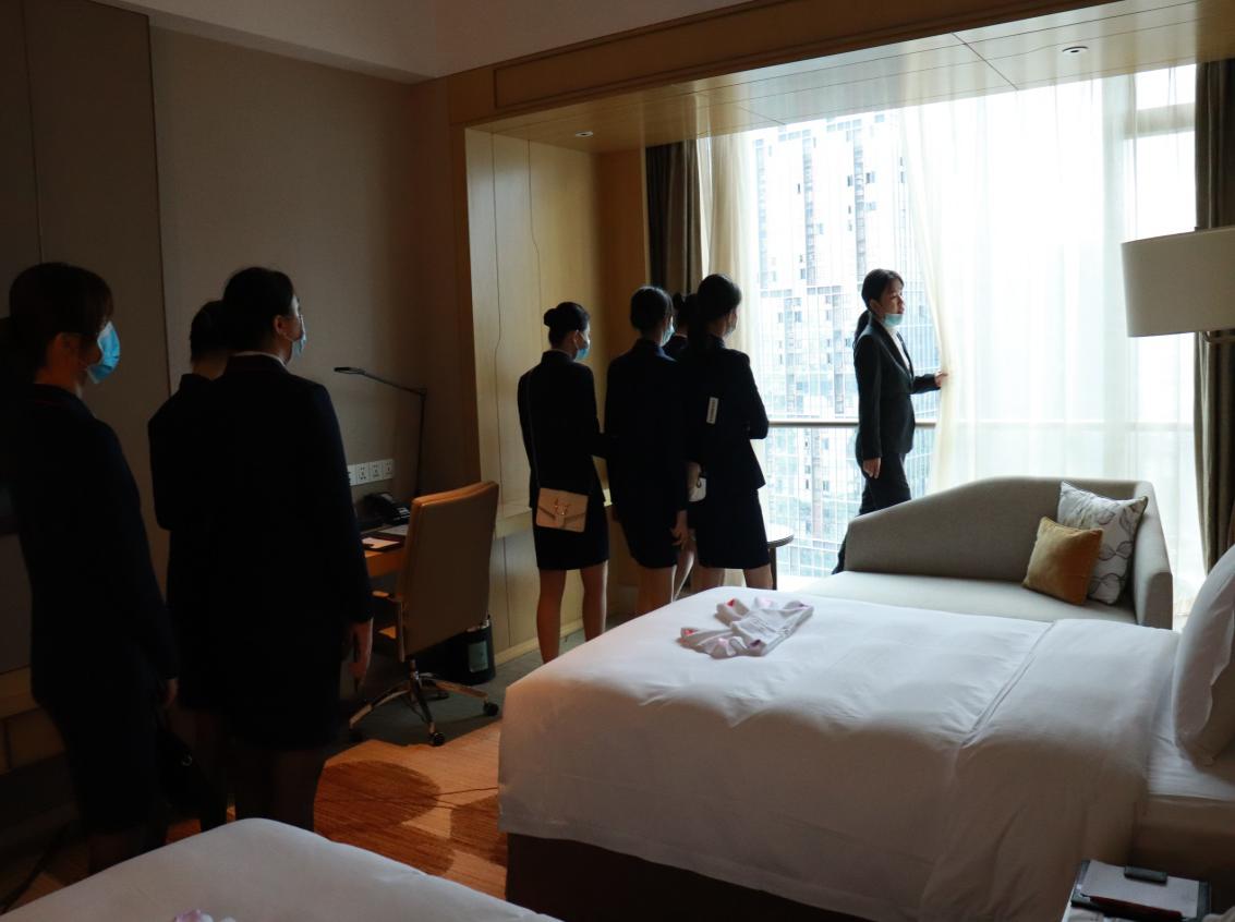 同學(xué)們先后參觀了總統(tǒng)套房、商務(wù)套房、中餐廳、日式餐廳、大宴會廳、室內(nèi)恒溫游泳池、健身房及SPA。酒店部門負(fù)責(zé)人羅經(jīng)理向同學(xué)們介紹了酒店的整體情況,讓同學(xué)們切身感受到了實(shí)際操作能力的重要性。同時(shí),參加參觀同學(xué)也意識到作為酒店工作人員不僅要對酒店知識熟悉,個(gè)人的綜合素質(zhì)和人格魅力也同樣是不可獲缺的職業(yè)要素。