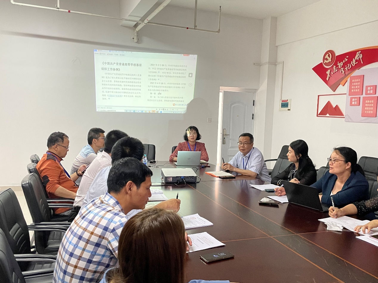 會(huì)上還傳達(dá)學(xué)習(xí)了《中國(guó)共產(chǎn)黨普通高等學(xué)?;鶎咏M織工作條例》。