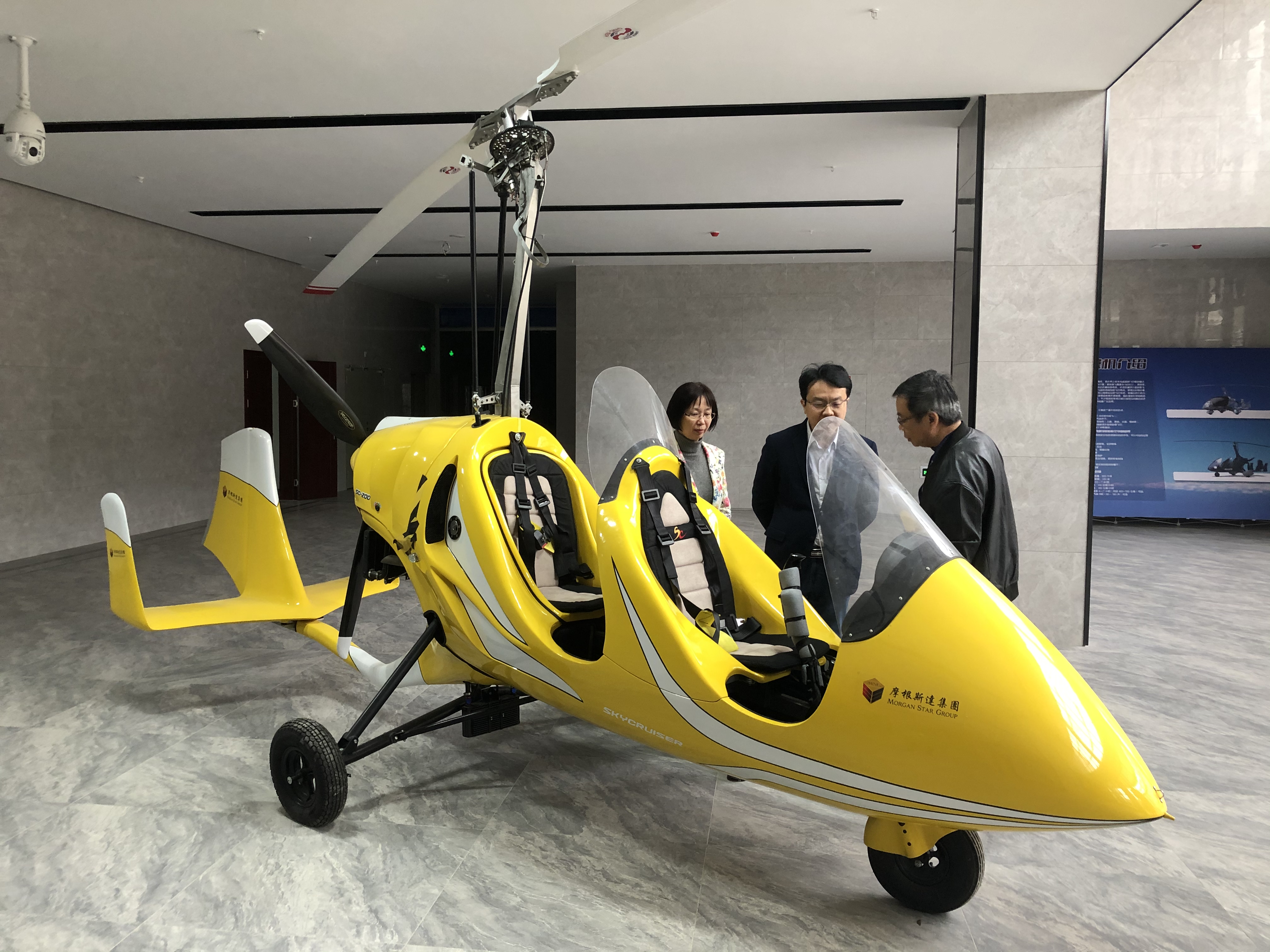 李海明處長一行,還參觀了研發(fā)中心加盟企業(yè)摩根斯達(dá)集團(tuán)捐贈的通航旋翼機(jī)。