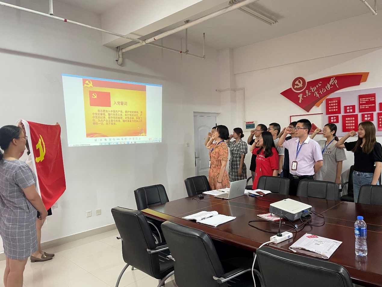 根據(jù)學(xué)院黨史學(xué)習(xí)教育6月份整體安排,學(xué)生第一黨支部、教師第二黨支部分別開展“重溫入黨誓詞,堅(jiān)定理想信念”主題黨日活動(dòng)。在蘇漢美副書記的帶領(lǐng)下,全體黨員面對鮮紅的黨旗,高舉右臂,緊握右拳,莊嚴(yán)宣誓:“我志愿加入中國共產(chǎn)黨,擁護(hù)黨的綱領(lǐng),遵守黨的章程,履行黨員義務(wù),執(zhí)行黨的決定,嚴(yán)守黨的紀(jì)律,保守黨的秘密,對黨忠誠,積極工作,為共產(chǎn)主義奮斗終身,隨時(shí)準(zhǔn)備為黨和人民犧牲一切,永不叛黨。”鏗鏘恢宏的誓詞,強(qiáng)烈震撼著在場的每一位黨員,一字一句,神圣而豪邁。錚錚誓言,體現(xiàn)了黨員同志們對中國共產(chǎn)黨的無限忠誠。