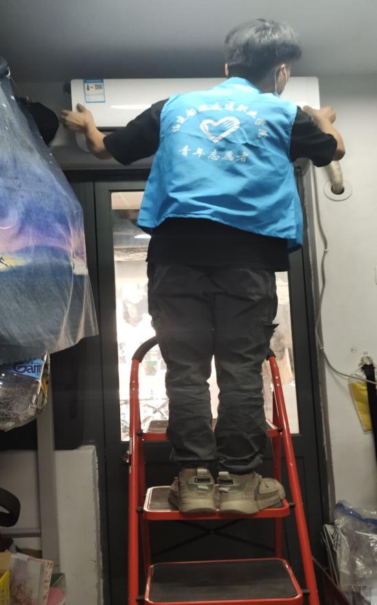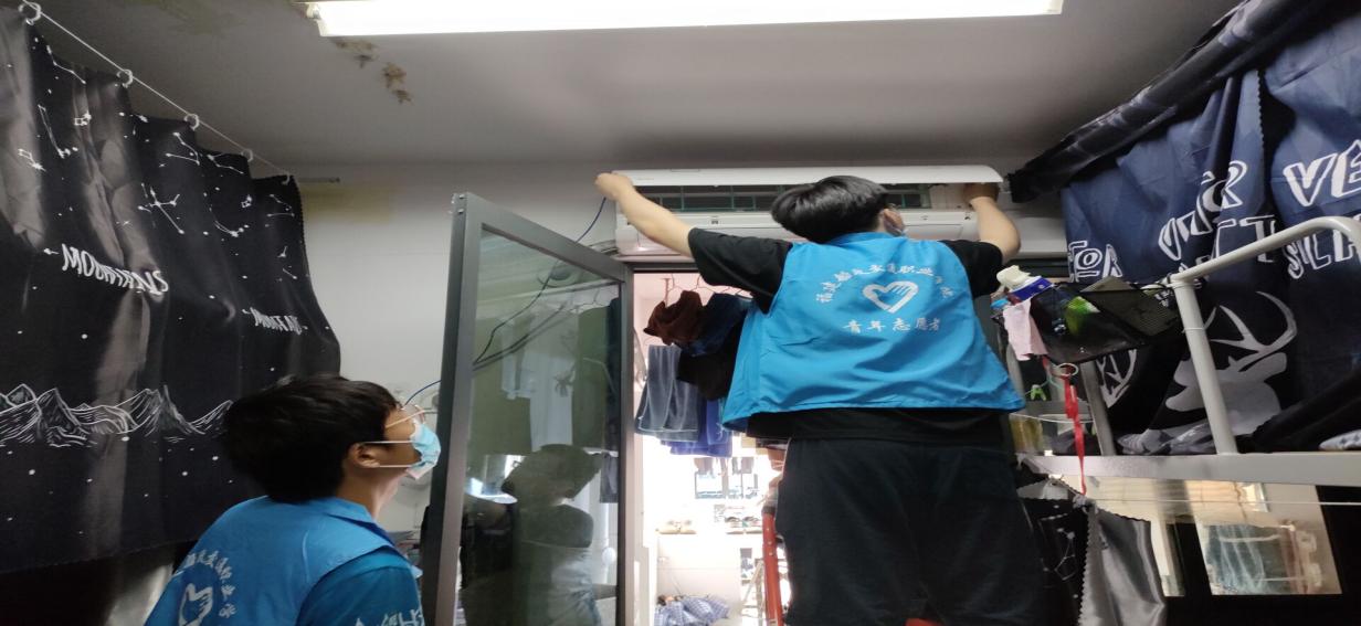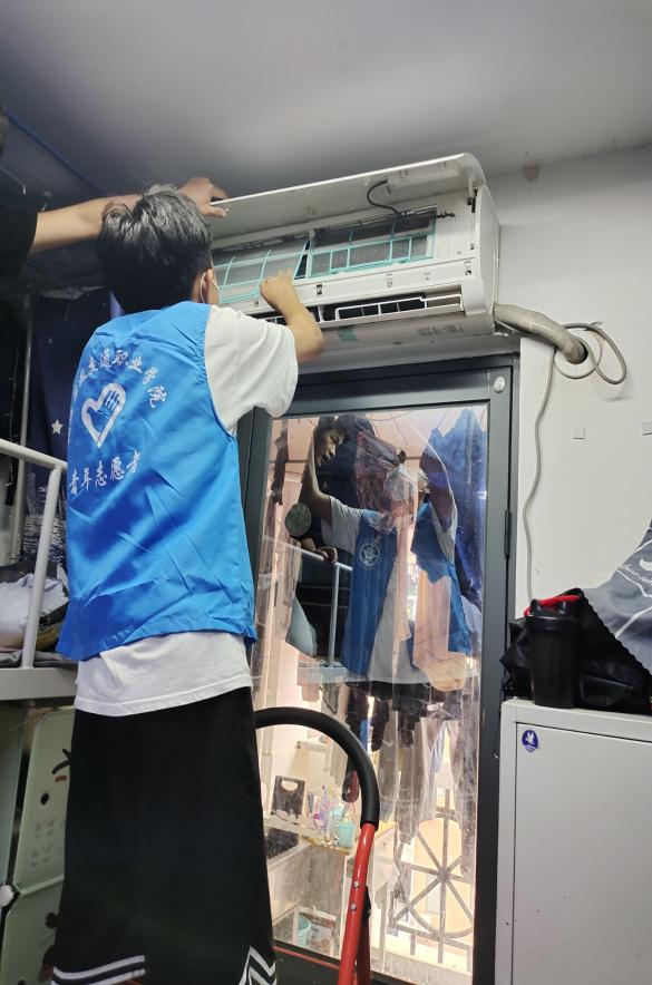 志愿者在負(fù)責(zé)人的帶領(lǐng)下各司其職,積極主動(dòng)地敲響每一間宿舍的門,詢問同學(xué)們是否有清洗空調(diào)的需要。對(duì)有些不太了解清晰空調(diào)重要的同學(xué),志愿者們都會(huì)在清洗的過程中給他們科普。志愿者們經(jīng)過事先的訓(xùn)練,掌握了清洗空調(diào)的辦法,在給同學(xué)們提供服務(wù)的過程中能很熟練地取出機(jī)內(nèi)濾網(wǎng),清洗空調(diào)外殼、出風(fēng)口,最后再重新組裝回去,在此過程中的每一步他們都配合得十分默契。志愿者們?yōu)橥瑢W(xué)服務(wù)的精神,給我們樹立了榜樣。