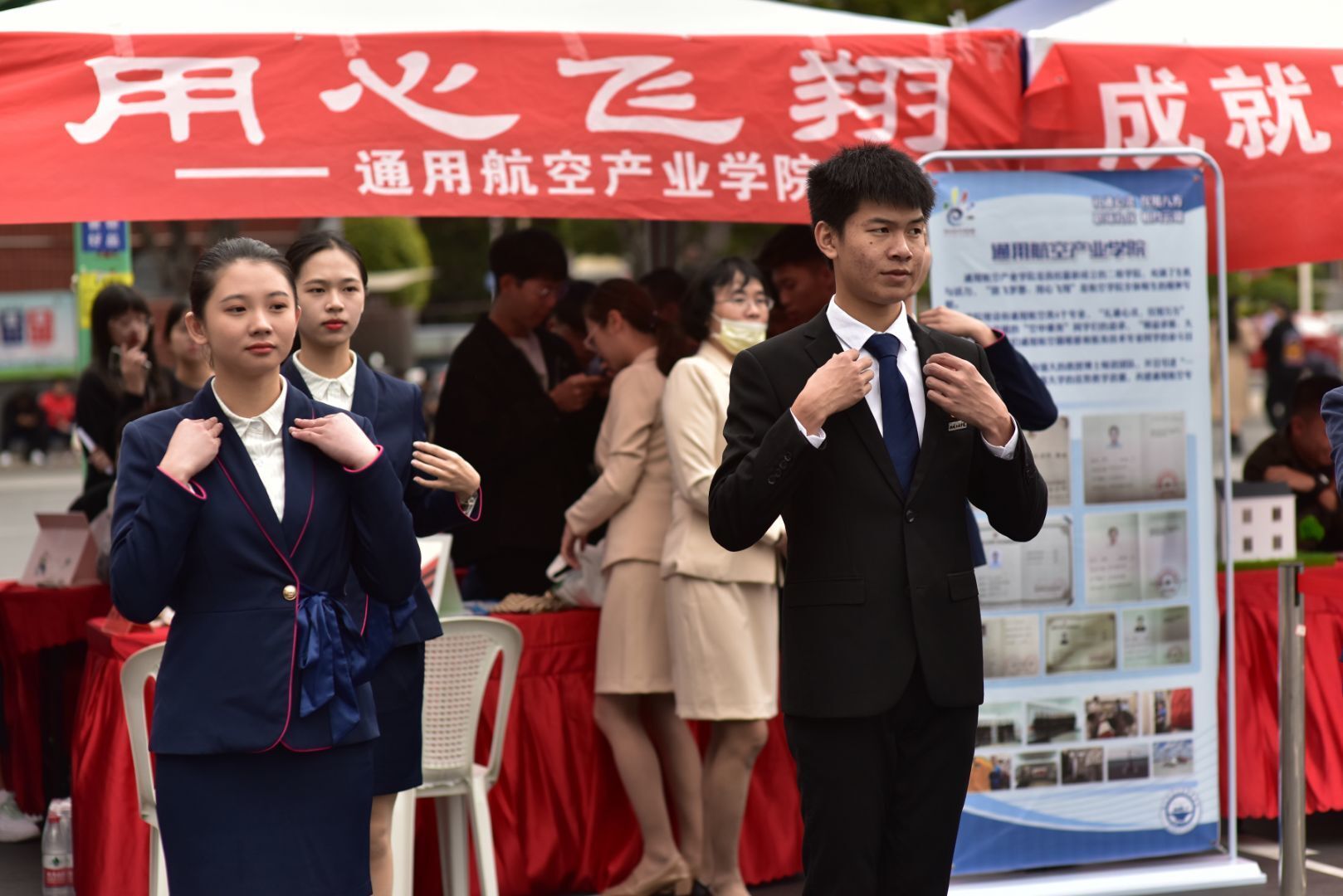 為宣傳展示職業(yè)教育助力新冠肺炎疫情防控、支持復(fù)工復(fù)產(chǎn)、促進(jìn)就業(yè)創(chuàng)業(yè)等方面的成效,大力弘揚(yáng)勞動(dòng)光榮、技能寶貴、創(chuàng)造偉大的時(shí)代風(fēng)尚,進(jìn)一步營(yíng)造全社會(huì)關(guān)心支持職業(yè)教育的良好氛圍,根據(jù)《關(guān)于做好2020年職業(yè)教育活動(dòng)周相關(guān)工作的預(yù)通知》要求,2020年11月14日上午通用航空產(chǎn)業(yè)學(xué)院充分利用自身的專業(yè)優(yōu)勢(shì),結(jié)合專業(yè)特色開(kāi)展職業(yè)教育為民服務(wù)項(xiàng)目:禮通心靈,儀用萬(wàn)方——職業(yè)禮儀展示。