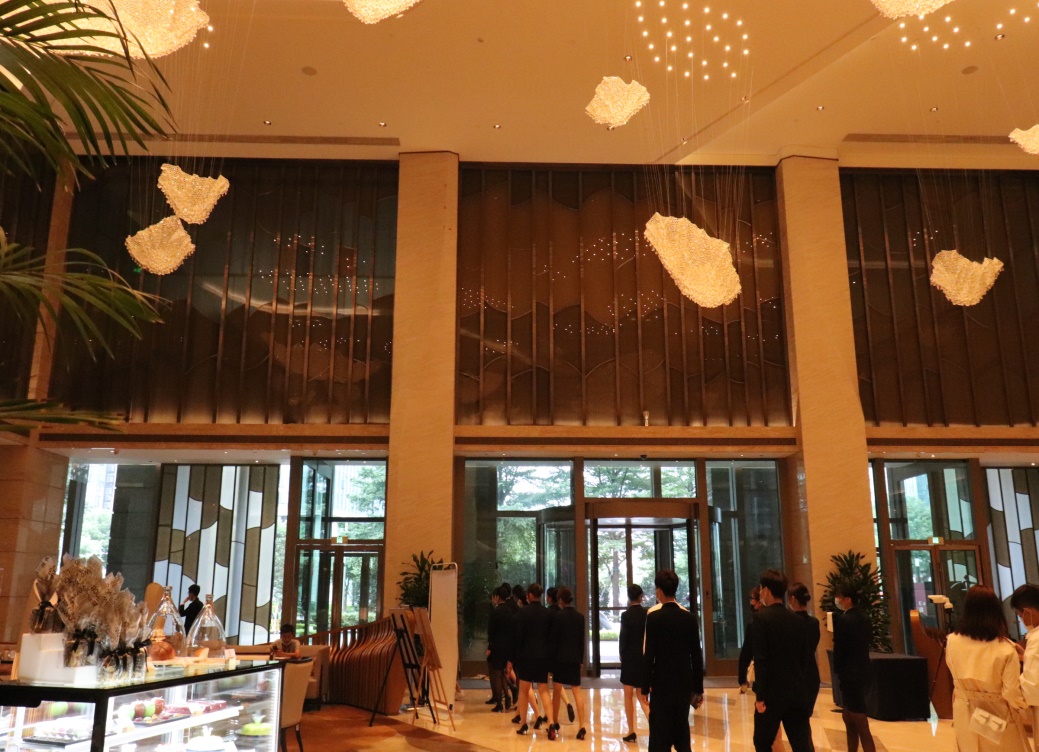 2020年10月21日下午,在輔導員范聲斌老師帶領下,2019級空乘1班共47名學生到達福州融僑皇冠假日酒店進行課程實踐參觀。