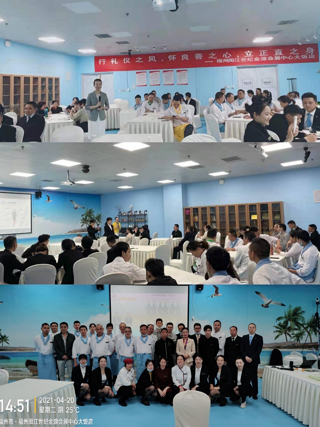 根據(jù)《福州市人力資源和社會(huì)保障局 福州市財(cái)政局關(guān)于2021年“兩節(jié)”期間支持企業(yè)開(kāi)展職工技能培訓(xùn)工作的通知》(榕人社培〔2021〕10號(hào))精神,“兩節(jié)”期間,為支持企業(yè)開(kāi)展職工技能培訓(xùn)工作,提升企業(yè)職工禮儀技能,2021年4-5月通用航空產(chǎn)業(yè)學(xué)院空乘專業(yè)教師用課余時(shí)間至世紀(jì)金源大飯店為企業(yè)職工開(kāi)展禮儀培訓(xùn)。培訓(xùn)期間,我院教師們以飽滿的熱情、過(guò)硬的專業(yè)技能對(duì)企業(yè)員工進(jìn)行禮儀培訓(xùn),傳播中華文明禮儀之風(fēng),深受企業(yè)員工好評(píng)。
