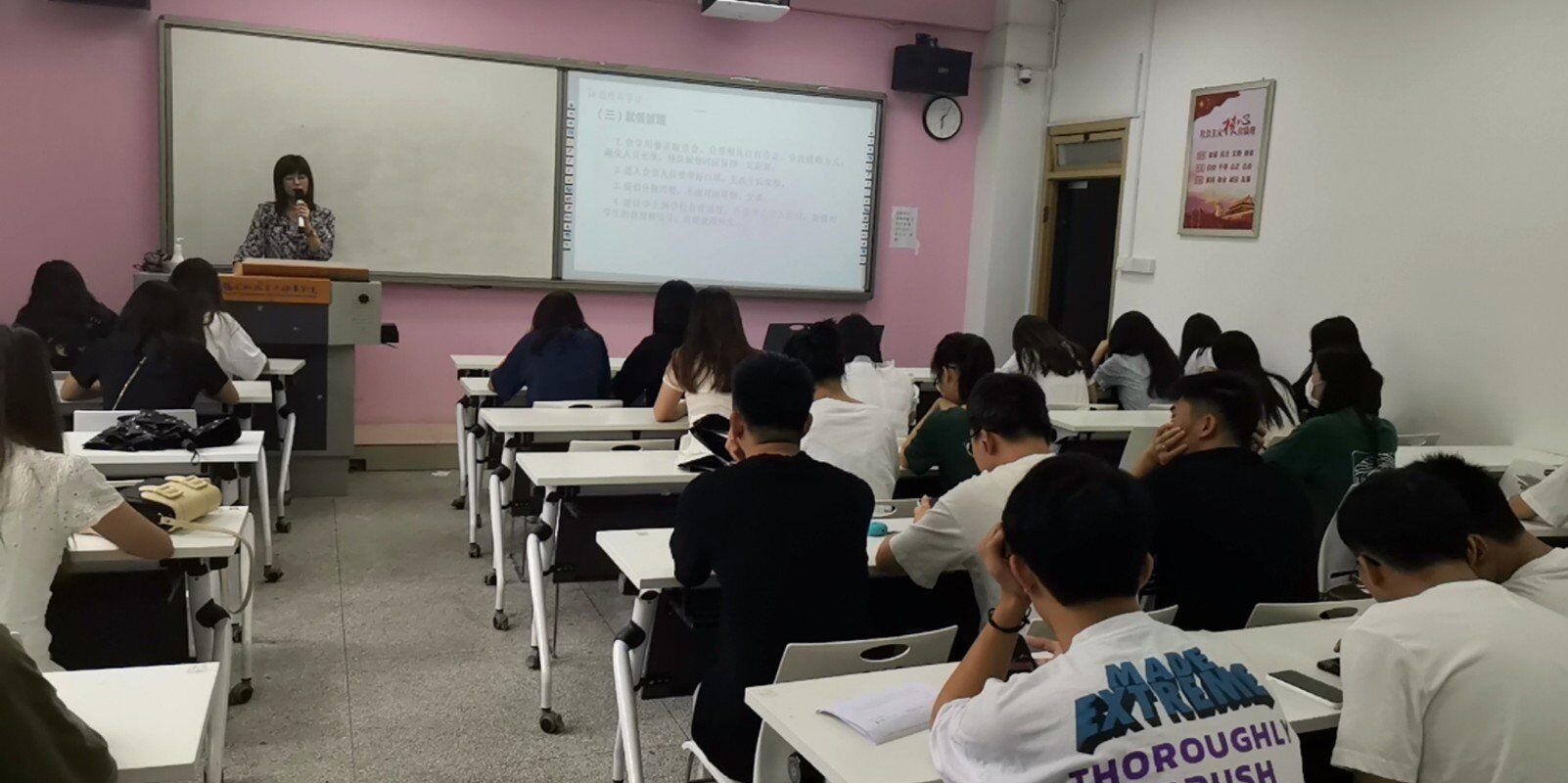 班主任陳瑞娟老師、陳巧玲老師從疫情防控不放松、上課的課堂紀(jì)律、校園各類安全、校外實(shí)習(xí)實(shí)踐注意事項及相關(guān)要求、畢業(yè)論文寫作要求、專升本注意事項等等,給學(xué)生一一進(jìn)行詳細(xì)講解。最后,現(xiàn)場答疑學(xué)生在秋季學(xué)期上課、畢業(yè)實(shí)習(xí)等問題,開啟秋季學(xué)期第一課。