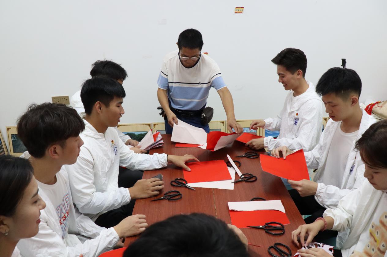 林老師為隊員們分發(fā)了紙張和剪刀,隊員們都動起手來,剪出屬于自己的窗花。