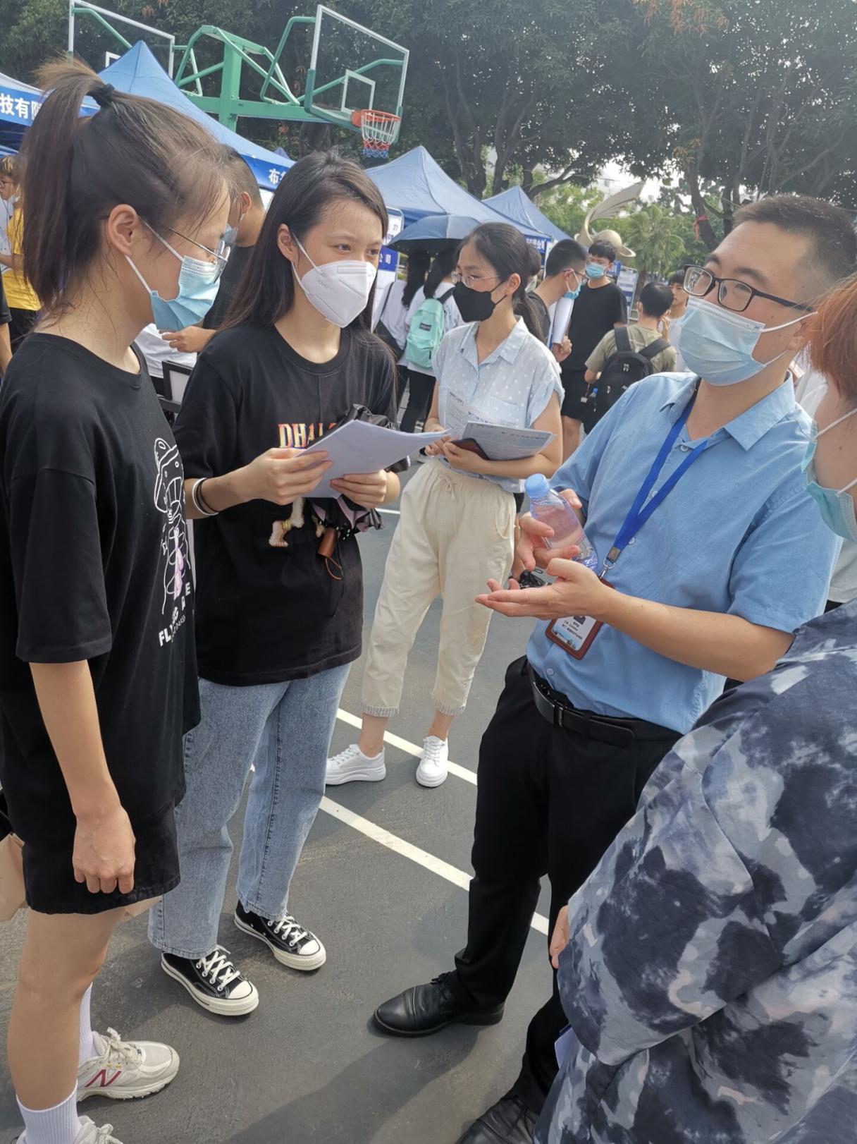 2022屆畢業(yè)生積極踴躍參加,現(xiàn)場氣氛熱烈。企業(yè)負(fù)責(zé)人介紹了招聘崗位的具體情況,并就學(xué)生們普遍關(guān)心的工作內(nèi)容、工作薪酬、晉升空間等問題做了詳細(xì)的解答。畢業(yè)班輔導(dǎo)員范聲斌也與在現(xiàn)場求職的學(xué)生親切交談,了解學(xué)生投遞簡歷、現(xiàn)場面試等情況,鼓勵(lì)學(xué)生多積累面試經(jīng)營,沉著、自信面對用人單位的選賢任能,發(fā)揮出自己最好的水平,一定能收到滿意的offer。