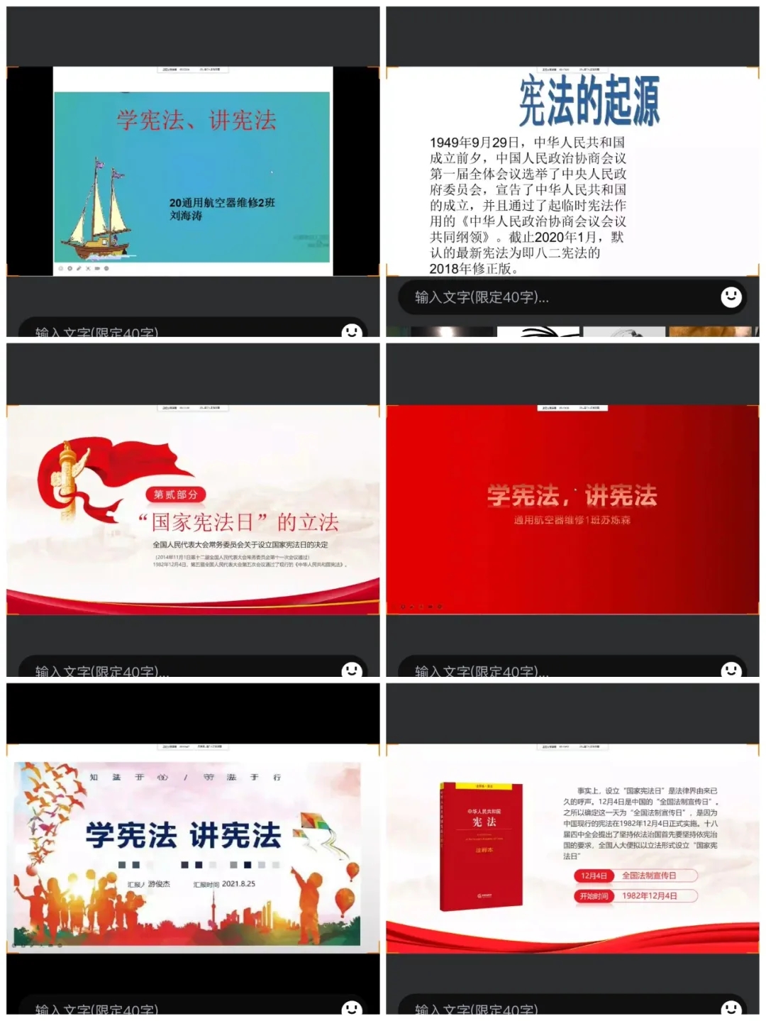 在本次演講比賽過程中,參賽選手們將自己準備的ppt投放于屏幕中,以線上視頻的方式談憲法認識、或論憲法精神,道出自己的獨特見解。演講結(jié)束后,經(jīng)認真研究,最終空中乘務2班葉婧茹以及通用航空器維修2班劉海濤,以優(yōu)異成績獲得參加2021年9月8日由福建船政交通職業(yè)學院學生工作處、馬克思主義學院共同舉辦的“學憲法,講憲法”校級遴選賽的資格。