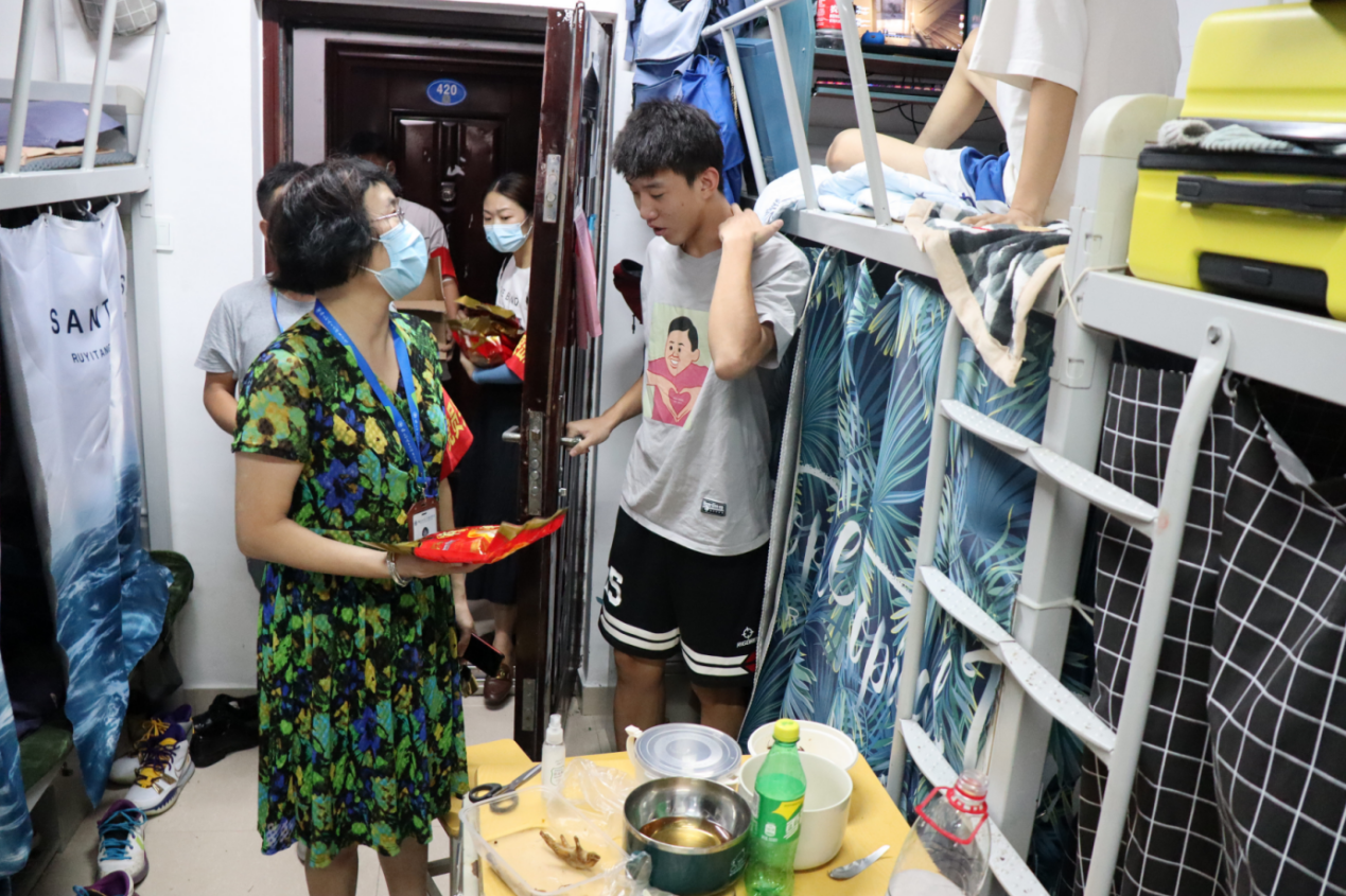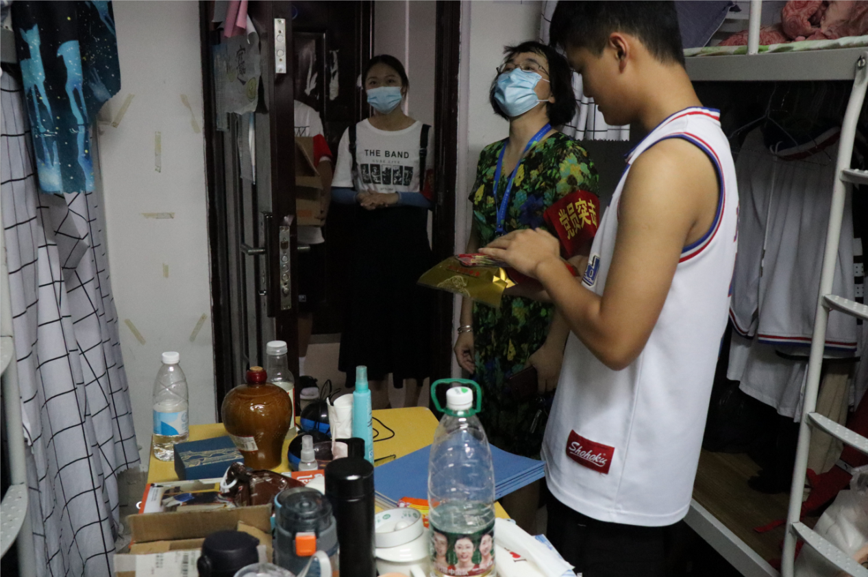 “因?yàn)橐咔榉揽氐脑?,離家較的同學(xué)們不能回家團(tuán)聚,但從你們跨入校門的那一刻起,學(xué)校就和你們?cè)谝黄?,學(xué)校、老師就是你們的家人,你們?cè)趯W(xué)校所表現(xiàn)出來(lái)的勤奮刻苦、品學(xué)兼優(yōu)是學(xué)校的驕傲?!薄巴瑢W(xué)們一定要堅(jiān)信在黨中央的堅(jiān)強(qiáng)領(lǐng)導(dǎo)下,在全國(guó)人民的共同努力下,我們一定能夠取得這場(chǎng)‘戰(zhàn)疫’的勝利!去迎接風(fēng)雨過(guò)后更加絢麗的彩虹!”蘇漢美副書(shū)記將月餅送到每個(gè)同學(xué)手中,并深情寄語(yǔ),希望大家在大學(xué)期間能珍惜時(shí)間,養(yǎng)成良好的學(xué)習(xí)和生活習(xí)慣,以優(yōu)異的成績(jī)回報(bào)國(guó)家、社會(huì)和家人。