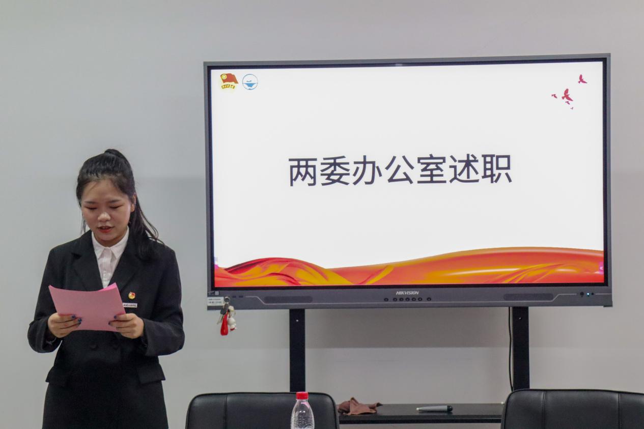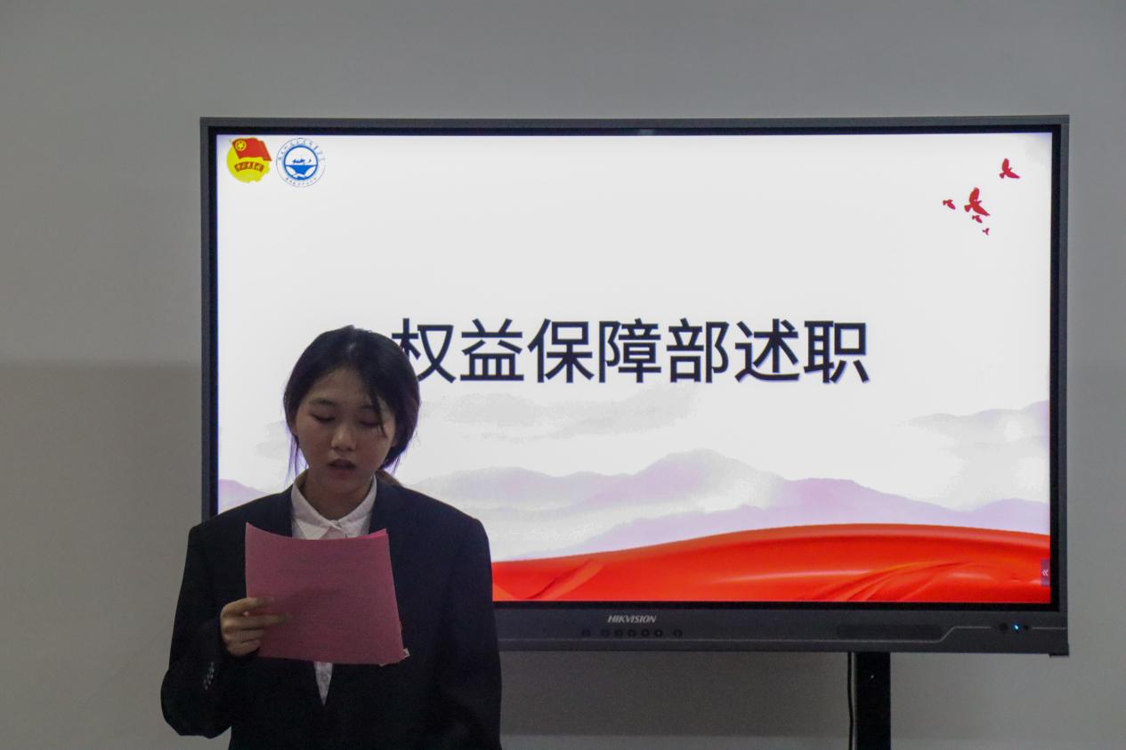 接下來,學(xué)院分團委兼職副書記(學(xué)生)、組織部、兩委綜合辦公室、新媒體、學(xué)生權(quán)益保障部……負責(zé)人圍繞各部門工作重點依次進行述職匯報。全體述職人員圍繞前期工作總結(jié)、工作中的不足及下一步工作展望進行匯報。大家對一學(xué)期的工作進行反思和總結(jié),嚴格對照學(xué)生干部標(biāo)準,總結(jié)經(jīng)驗,查擺不足,從嚴從實展現(xiàn)作為學(xué)生干部的擔(dān)當(dāng)作為、職責(zé)使命。