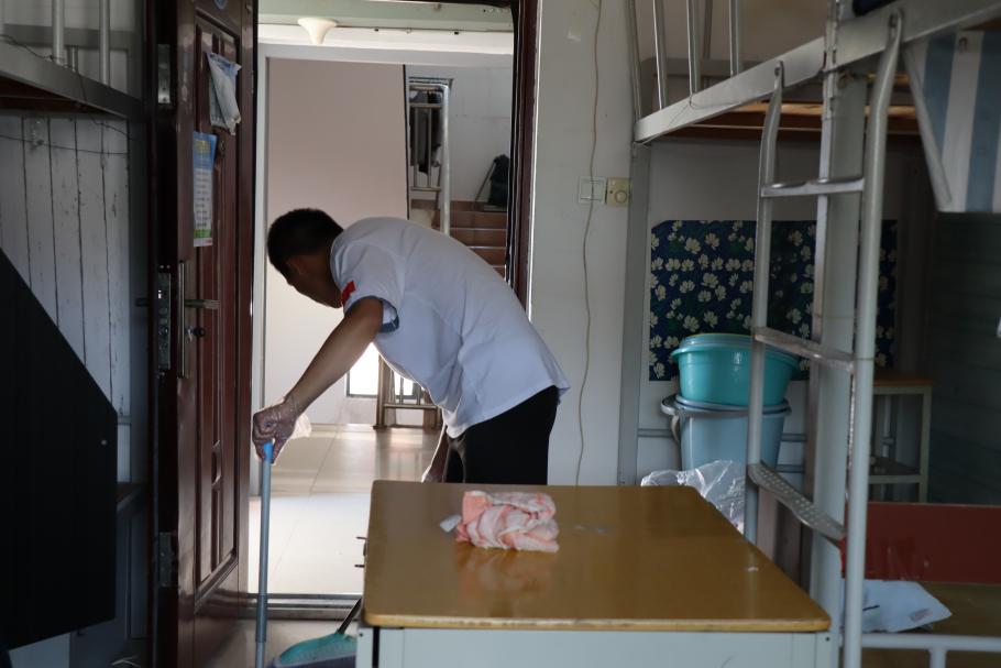 志愿者們將座椅擺放整齊,確保了抽屜內(nèi)、桌面上無垃圾和物品,使宿舍衛(wèi)生干凈整潔......這一項(xiàng)接一項(xiàng)的任務(wù)要求提出后,接踵而至的便是同學(xué)們忙碌起來的身影,來來往往、不知疲倦地穿梭于宿舍之中,認(rèn)真投入于宿舍的清掃活動中。