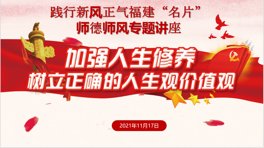 此次講座旨在踐行“堅(jiān)守立德樹人初心,辦好人民滿意教育”的新風(fēng)正氣福建“名片”,深入貫徹教育部印發(fā)《新時(shí)代高校教師職業(yè)行為十項(xiàng)準(zhǔn)則》要求,通過此次的講座活動(dòng),牢固樹立教師正確的職業(yè)理想和推進(jìn)師德建設(shè)工作創(chuàng)新為主要任務(wù),進(jìn)一步加強(qiáng)師德師風(fēng)建設(shè)的制度化和規(guī)范化,提高我院師德師風(fēng)建設(shè)的成效,從而把我院的師德師風(fēng)建設(shè)工作引向深入,助力我校雙高建設(shè)高質(zhì)量的完成。