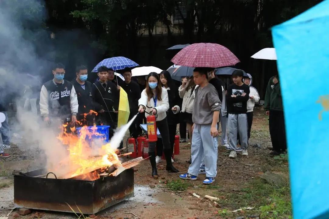 同學們集結完畢后,自律會帶大家開展滅火實戰(zhàn)演練,同學們進行了滅火實操演練。