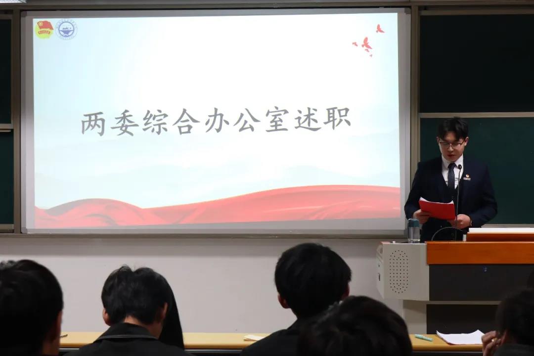 首先上臺(tái)述職的是學(xué)生會(huì)執(zhí)行主席陳偉翔,他強(qiáng)調(diào)到學(xué)生會(huì)成員應(yīng)當(dāng)積極響應(yīng)黨和國(guó)家的號(hào)召,擁護(hù)黨的領(lǐng)導(dǎo),深入學(xué)習(xí)貫徹了黨的十九大精神。隨后,分團(tuán)委、學(xué)生會(huì)各部門負(fù)責(zé)人依次上臺(tái),從政治態(tài)度、道德品行、學(xué)習(xí)情況、工作成效和紀(jì)律作風(fēng)五個(gè)方面對(duì)本學(xué)期工作進(jìn)行重點(diǎn)總結(jié)。讓大家更好的了解團(tuán)學(xué)這個(gè)有愛的大家庭。