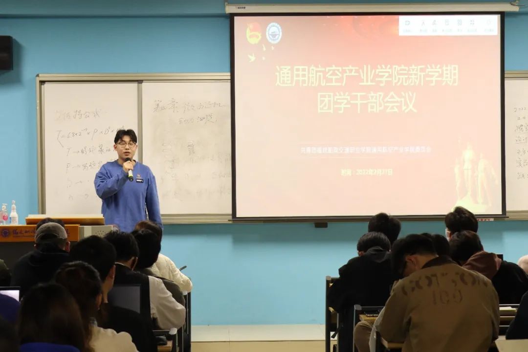 為進(jìn)一步提高學(xué)院團(tuán)學(xué)干部的思想政治水平和工作能力,加強(qiáng)部門與部門之間的聯(lián)絡(luò)與合作,增強(qiáng)應(yīng)對(duì)和處理突發(fā)問題的能力。2022年2月27日晚七點(diǎn),通用航空產(chǎn)業(yè)學(xué)院于31號(hào)樓308教室召開2022年“通用航空產(chǎn)業(yè)學(xué)院新學(xué)期團(tuán)學(xué)干部會(huì)議”。培訓(xùn)會(huì)由通用航空產(chǎn)業(yè)學(xué)院團(tuán)委負(fù)責(zé)人陸李欽老師主講,各部門負(fù)責(zé)人及21級(jí)新成員,近60多名學(xué)生參加本次會(huì)議。
