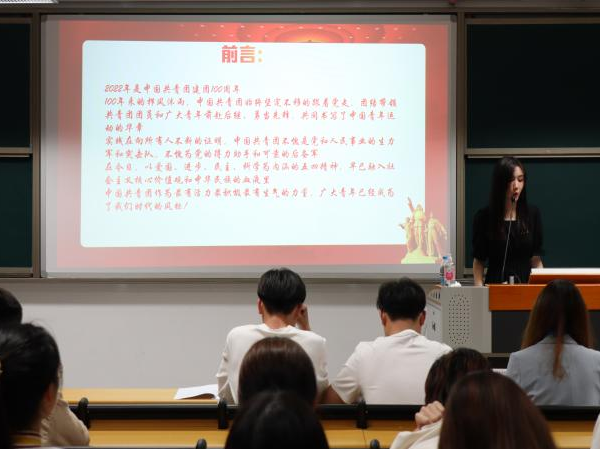 一段段鮮活的故事,一個(gè)個(gè)深刻的感悟,一次次打動(dòng)著在場(chǎng)的每一個(gè)人,掌聲此起彼伏。選手們以激情澎湃,感人肺腑的演講,別具一格的視頻展示,給觀(guān)眾帶來(lái)聽(tīng)覺(jué)、視覺(jué)的震撼。作為祖國(guó)的新一代接班人,我們胸懷強(qiáng)烈的歷史責(zé)任感、使命感?;厥装倌陥F(tuán)史,我們的心緒就像大海的波濤,久久不能平靜,中國(guó)共產(chǎn)主義青年團(tuán)在黨的帶領(lǐng)下,組織下,在中華文明歷史邏輯、現(xiàn)代化發(fā)展邏輯和共產(chǎn)主義運(yùn)動(dòng)邏輯的共同推動(dòng)之下得以誕生和發(fā)展。我們要用馬克思列寧主義、毛澤東思想和現(xiàn)代科學(xué)文化武裝自己,做促進(jìn)改革開(kāi)放的模范,做遵守職業(yè)道德和社會(huì)公德的模范,做學(xué)習(xí)和維護(hù)社會(huì)主義民主、守法遵紀(jì)的模范,做維護(hù)民族團(tuán)結(jié),在兩個(gè)文明建設(shè)的實(shí)踐中,鍛煉成為有理想、有道德、有文化、有紀(jì)律的優(yōu)秀青年。青年人要有“敢教日月?lián)Q新天”的堅(jiān)定信念,“千磨萬(wàn)擊還堅(jiān)勁”的強(qiáng)大意志和“亂云飛渡仍從容”的非凡定力,方能凝聚起實(shí)現(xiàn)中華民族偉大復(fù)興中國(guó)夢(mèng)的磅礴偉力?!耙郧啻褐?,創(chuàng)建青春之家庭,青春之國(guó)家,青春之民族?!?/span>27歲時(shí)李大釗寫(xiě)下的誓言,仍是吾輩所求。實(shí)現(xiàn)第二個(gè)百年奮斗目標(biāo)新的趕考之路,青年人定能寫(xiě)下不負(fù)黨和人民的精彩答卷。