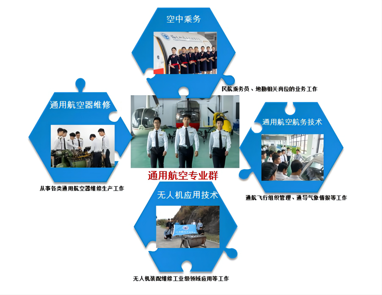 通用航空公司、機場及航站的機務工程部;通用航空航主機或附件維修單位;通航企業(yè)的技術(shù)、生產(chǎn)、質(zhì)量管理部門等工作。專業(yè)性強、職業(yè)成長性好、待遇豐厚。