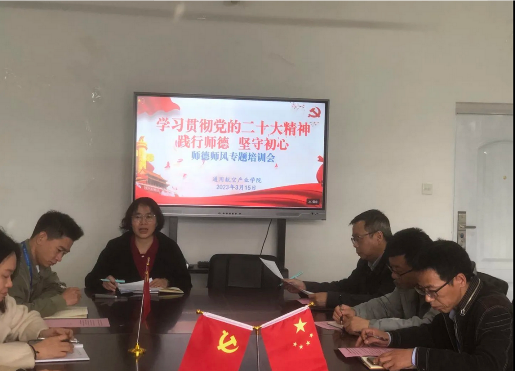 為進(jìn)一步貫徹黨的教育方針,推動(dòng)學(xué)院師德師風(fēng)建設(shè)活動(dòng)深入開展,3月15日下午,通用航空產(chǎn)業(yè)學(xué)院在鑒知樓1213黨員活動(dòng)室開展“學(xué)習(xí)貫徹黨的二十大 踐行師德 堅(jiān)守初心”師德師風(fēng)專題培訓(xùn)會(huì)。學(xué)院全體教師參加了會(huì)議,會(huì)議由黨總支副書記蘇漢美主持。