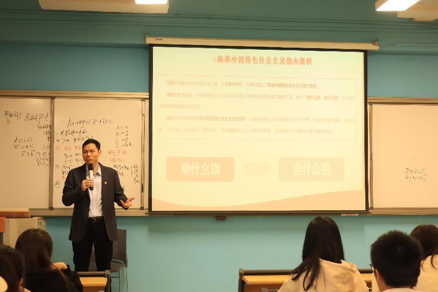 分黨校的第四講,由學生黨員張童為入黨積極分子們授課。他講到踔厲奮發(fā)的邁向新征程,就必須高舉偉大旗幟。黨的二十大報告高屋建瓴、宏大精深,科學回答了堅持和發(fā)展中國特色社會主義的歷史之問、時代之問和人民之問,開辟了馬克思主義中國化時代化新境界,是一篇閃耀著馬克思主義真理光輝的綱領(lǐng)性文獻,是新時代新征程黨和國家事業(yè)發(fā)展、實現(xiàn)第二個百年奮斗目標的政治宣言和行動綱領(lǐng)。