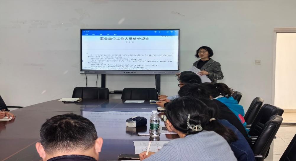 會(huì)議伊始,黨總支副書記蘇漢美組織教職工學(xué)習(xí)了中共中央組織部、人力資源和社會(huì)保障部關(guān)于印發(fā)《事業(yè)單位工作人員處分規(guī)定》。系統(tǒng)解讀了《處分規(guī)定》的基本框架、重點(diǎn)內(nèi)容,要求全體教職工全面掌握《處分規(guī)定》處分的種類和適用、違規(guī)違紀(jì)違法行為及其適用的處分、處分的權(quán)限和程序等內(nèi)容。會(huì)議強(qiáng)調(diào),全體教職工要不斷增強(qiáng)紀(jì)律意識(shí)和自我約束能力,樹立正確的職業(yè)觀念,依法執(zhí)教,堅(jiān)決抵制各種違法違紀(jì)行為,做到常警常醒,立足崗位,創(chuàng)先爭優(yōu),為清廉學(xué)校的建設(shè)作出貢獻(xiàn)。