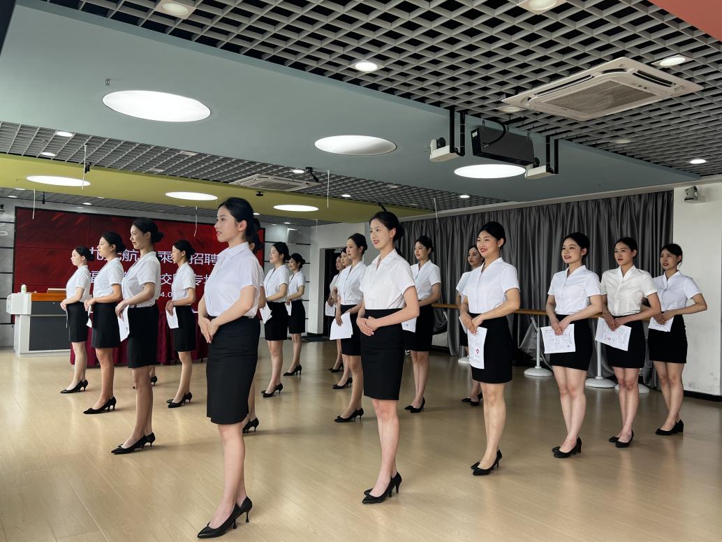 招聘會期間,同學們展現(xiàn)了飽滿的精神狀態(tài)和過硬的專業(yè)素質(zhì),贏得了九元航空有限公司招聘團隊對學校空中乘務專業(yè)人才培養(yǎng)的充分肯定。最終,經(jīng)過形象海選、身體初檢和素質(zhì)面試等環(huán)節(jié),黃銳、馬造國、雷水珍等11名同學順利通過初試,進入終審。