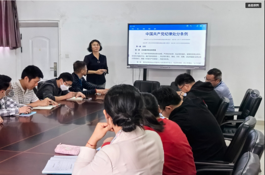 隨后,黨總支副書記蘇漢美同志以“習(xí)近平總書記關(guān)于黨的自我革命的重要思想 ”為切入點(diǎn),重點(diǎn)講述《中國(guó)共產(chǎn)黨紀(jì)律處分條例》修訂的時(shí)代背景、主旨要義及貫徹執(zhí)行等三個(gè)方面,全面系統(tǒng)地解讀了新修訂的《條例》,幫助與會(huì)人員進(jìn)一步深化對(duì)《條例》重大意義的認(rèn)識(shí),準(zhǔn)確把握此次《條例》修訂的鮮明特點(diǎn),深刻領(lǐng)會(huì)《條例》的豐富內(nèi)涵,自覺將紀(jì)律要求內(nèi)化于心、外化于行,確保全黨目標(biāo)一致、團(tuán)結(jié)一致、步調(diào)一致,推動(dòng)學(xué)院全面從嚴(yán)治黨向縱深發(fā)展。