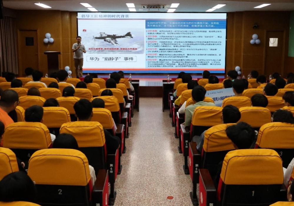 隨后肖老師列舉華為“掐脖子事件”,強調(diào)了工匠精神的重要性。我們作為航空相關(guān)從業(yè)人員,接觸科技最前沿的產(chǎn)物,更應(yīng)注重培養(yǎng)自身工匠精神,成為大國工匠。