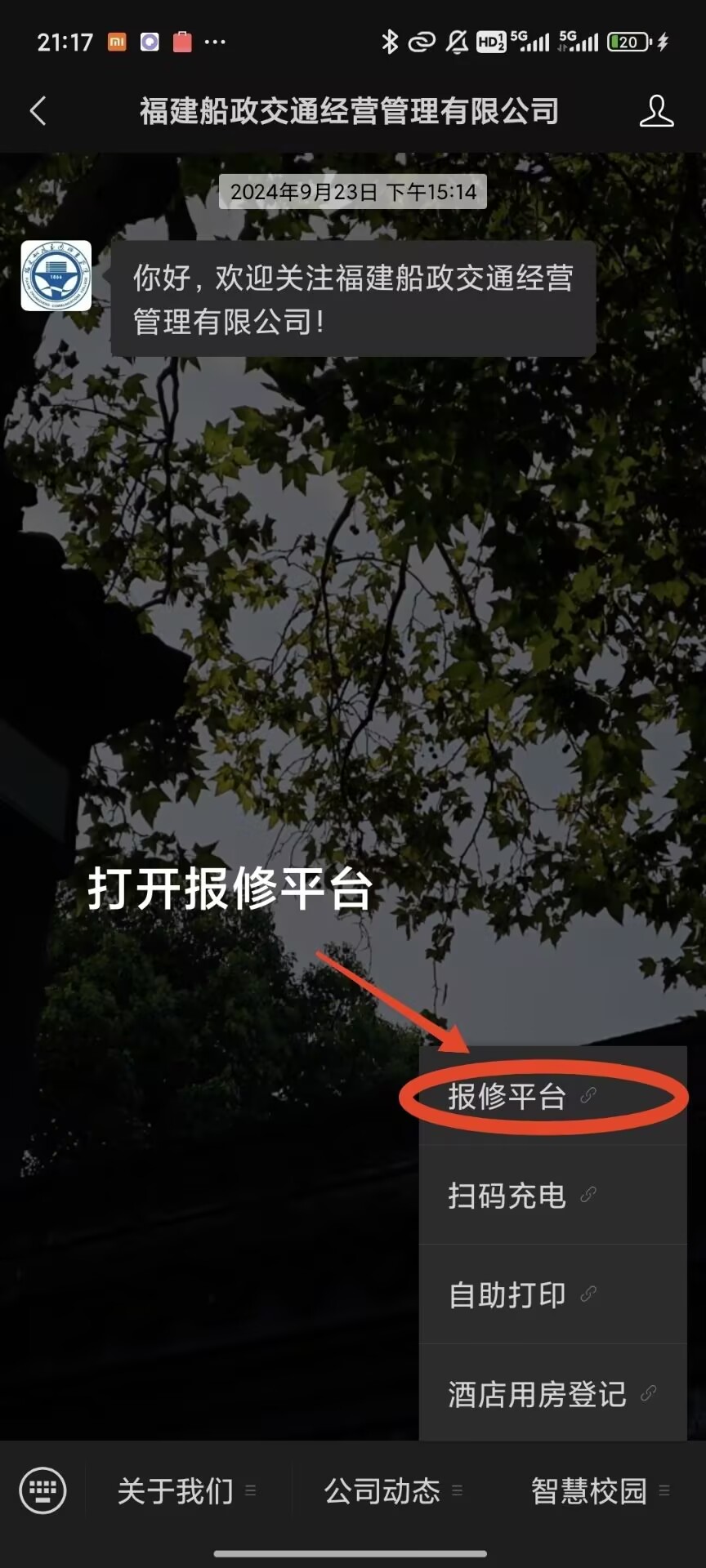 二、報(bào)修流程:福建船政交通經(jīng)營(yíng)管理公司公眾號(hào)