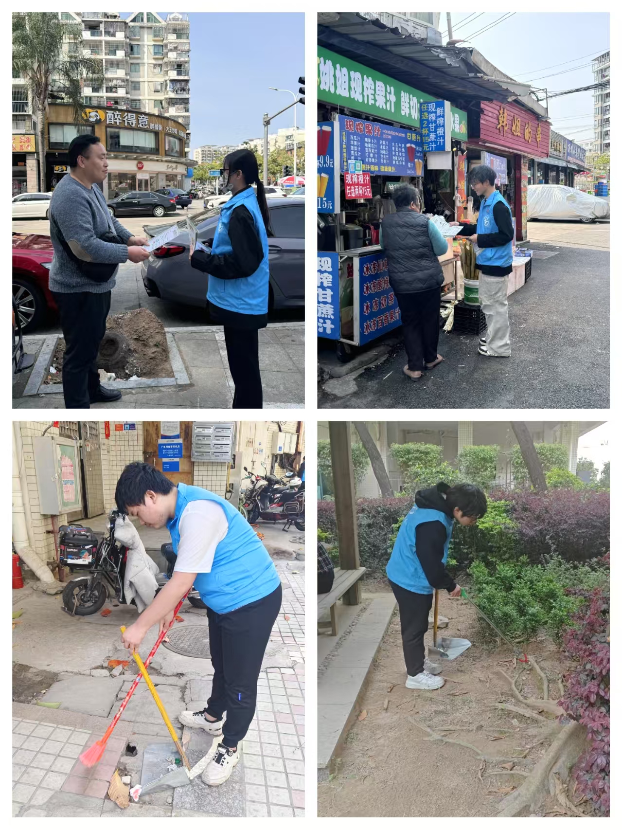 活動(dòng)開(kāi)始,志愿者們兵分兩路。一部分志愿者手持宣傳資料,穿梭在社區(qū)的各個(gè)角落,熱情地向居民發(fā)放世界讀書(shū)日的宣傳傳單。他們耐心地向居民介紹閱讀的益處,分享各類(lèi)書(shū)籍推薦,鼓勵(lì)居民養(yǎng)成閱讀習(xí)慣,營(yíng)造濃厚的書(shū)香氛圍。另一部分志愿者則拿起清潔工具,投入到社區(qū)衛(wèi)生清掃工作中。他們拿著掃帚、簸箕清掃地面,仔細(xì)清理道路上的煙頭、紙屑;還有的志愿者手持垃圾夾,深入社區(qū)的花圃草叢,認(rèn)真翻找隱藏在角落里的垃圾,讓社區(qū)環(huán)境煥然一新。