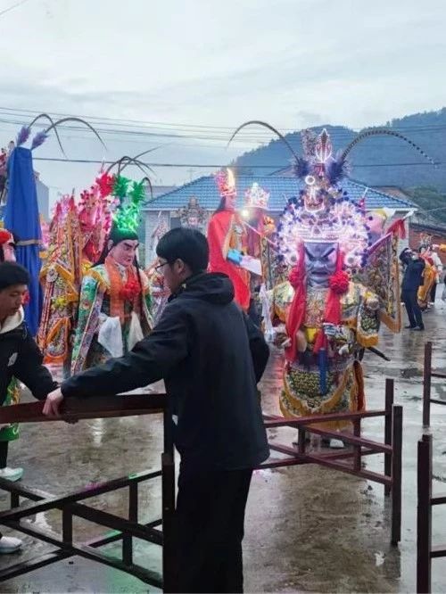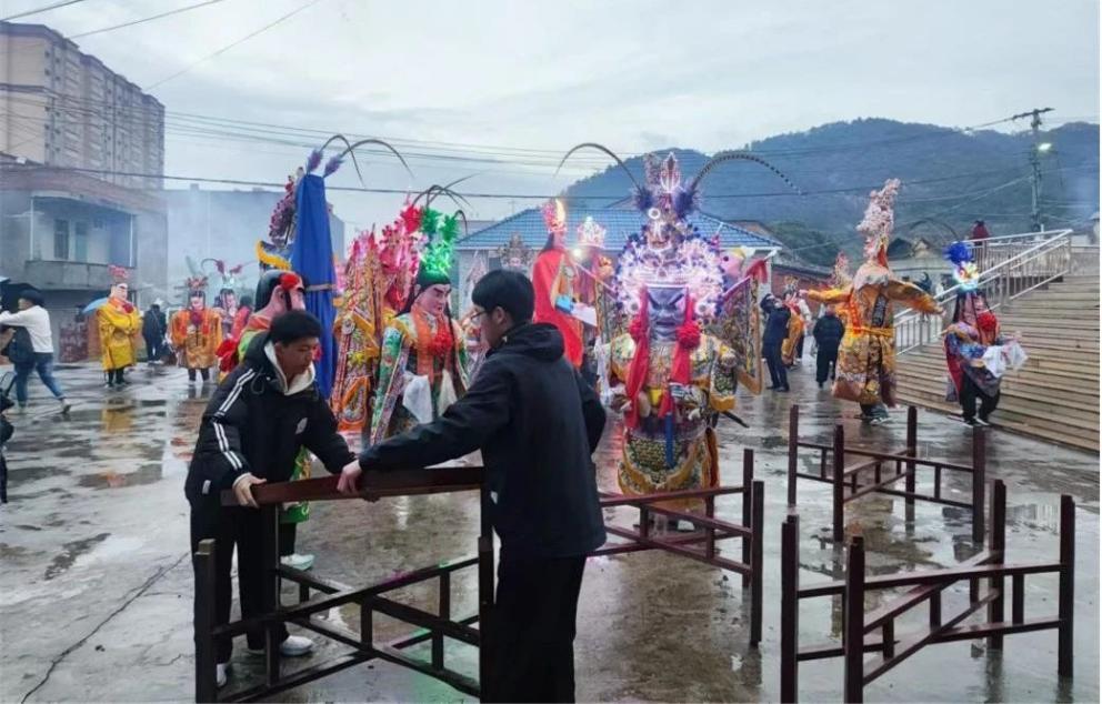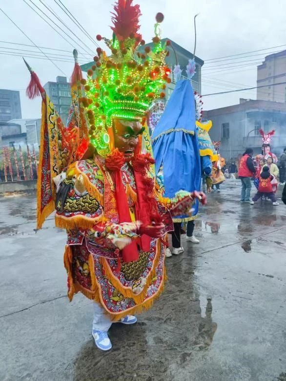 長樂厚福的游神活動現(xiàn)場,人聲鼎沸、熱鬧非凡,瞬間將同學們卷入民俗文化的歡樂漩渦。色彩斑斕、造型各異的神像被簇擁在巡游隊伍中央,或莊重、或慈祥、或威猛,每一尊皆為民眾精神寄托的具象。伴隨喧天鑼鼓、悠揚嗩吶,巡游隊伍走街串巷,所到之處,鞭炮齊鳴,居民虔誠敬拜,這是民間信仰與鄉(xiāng)土情懷緊密交織的畫面。