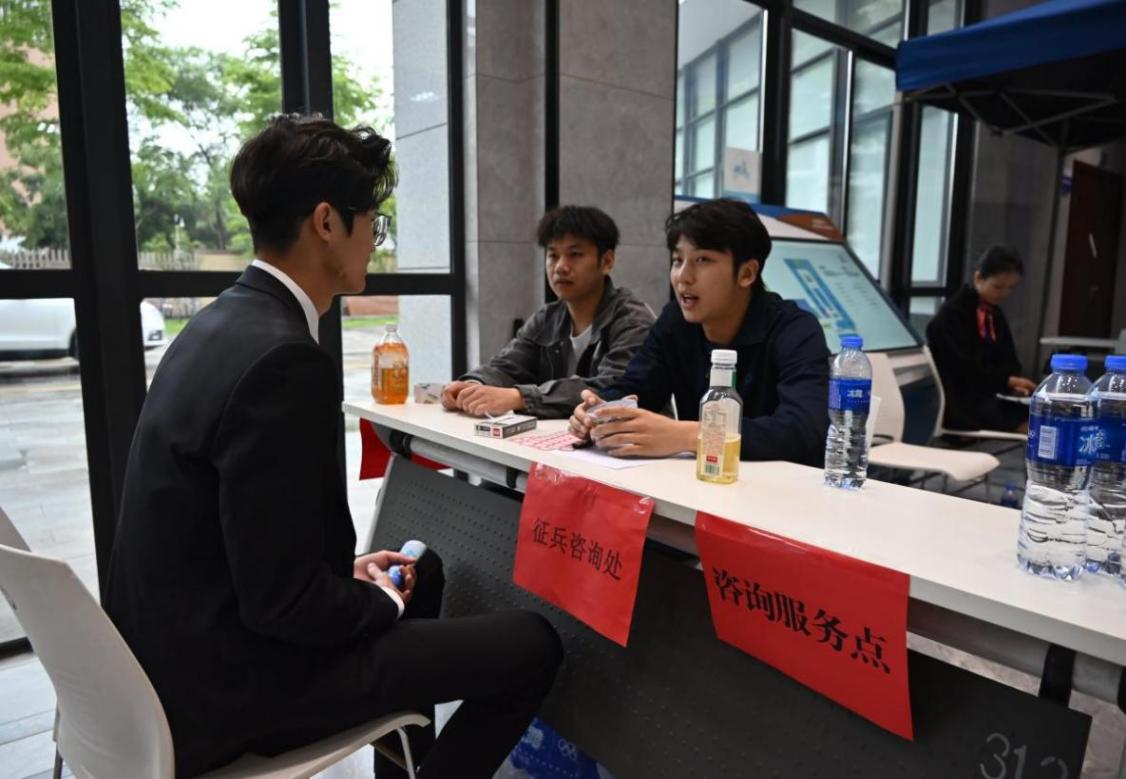 學(xué)院在線下招聘會上特設(shè)征兵咨詢處,為前來求職的同學(xué)詳細解讀征兵政策、報名流程、福利待遇等,還專門邀請退伍軍人分享軍營生活,展現(xiàn)從軍的價值與意義。許多畢業(yè)生表示,此次咨詢讓他們對參軍有了更深入的了解,通過退伍軍人的闡述,更激發(fā)了他們投身國防事業(yè)的熱情。