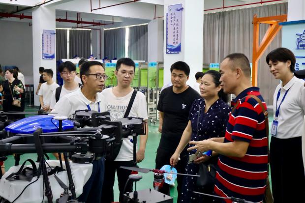 在航空港實訓(xùn)大廳,介紹了模擬機艙的各項功能,演示了客艙服務(wù)流程和應(yīng)急設(shè)備操作,展現(xiàn)了高度仿真的職業(yè)教學(xué)環(huán)境與注重實操能力培養(yǎng)的教學(xué)理念。在無人機實訓(xùn)室,現(xiàn)場演示并解析了無人機的結(jié)構(gòu)與應(yīng)用技術(shù),凸顯了學(xué)院在航空領(lǐng)域扎實的教學(xué)基礎(chǔ)和先進的實景化教學(xué)條件。在維修實訓(xùn)室,參觀了空客A320實訓(xùn)真機,講解了現(xiàn)代民用飛機的系統(tǒng)結(jié)構(gòu)、飛行原理及航空技術(shù)前沿發(fā)展,介紹了圍繞真機開展的實訓(xùn)課程設(shè)計情況。