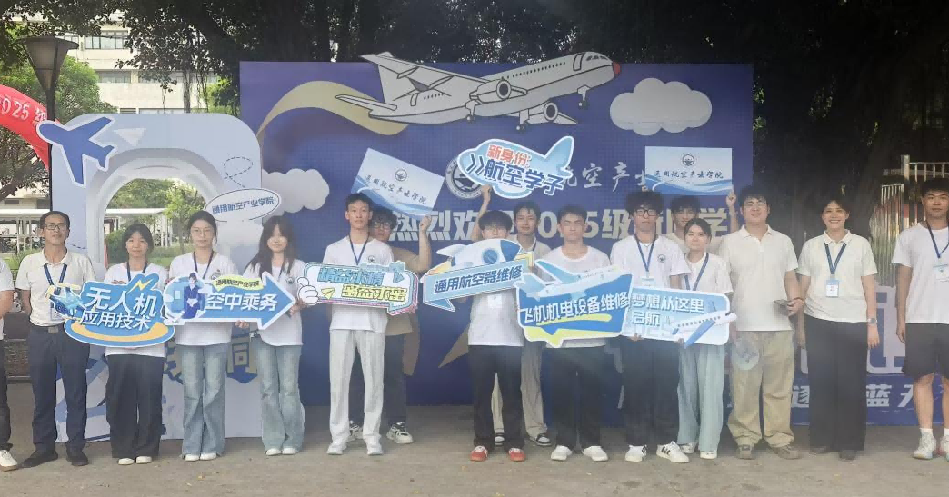 “通用航空產(chǎn)業(yè)學(xué)院”院名橫向排開,字體遒勁,像跑道般托起每個(gè)新生的航空夢。左側(cè)專業(yè)依次列出—無人機(jī)應(yīng)用技術(shù)、空中乘務(wù)、通用航空器維修、飛機(jī)機(jī)電設(shè)備維修,新翼已展,航路共赴。祝愿2025級(jí)全體新生在通用航空產(chǎn)業(yè)學(xué)院振翅高飛,翱翔萬里!讓我們的夢想從這里啟航!