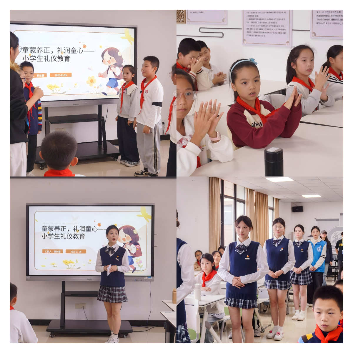 活動(dòng)伊始,志愿者們身著統(tǒng)一志愿服裝,以挺拔標(biāo)準(zhǔn)的站姿整齊列隊(duì),用嚴(yán)謹(jǐn)端莊的儀態(tài)向現(xiàn)場(chǎng)師生直觀展現(xiàn)禮儀素養(yǎng)的魅力。志愿者們借助精心打磨的PPT課件,將禮儀素養(yǎng)的核心內(nèi)涵與校園問(wèn)候、課堂坐姿、交往溝通等日常場(chǎng)景緊密結(jié)合,通過(guò)趣味動(dòng)畫(huà)短片、經(jīng)典禮儀小故事等孩子們喜聞樂(lè)見(jiàn)的形式,深入淺出地解析禮儀的重要意義,讓抽象的禮儀知識(shí)變得鮮活可感。