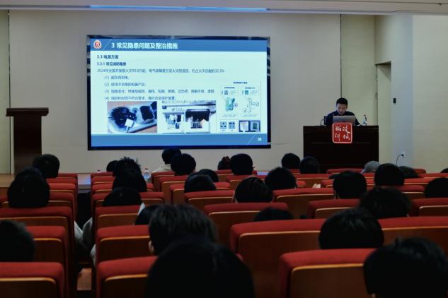 講座伊始,丁偉濱首先從燃燒的基本原理、火災(zāi)發(fā)生的常見(jiàn)原因等基礎(chǔ)知識(shí)入手,結(jié)合高校人員密集、實(shí)驗(yàn)室及宿舍隱患多的特點(diǎn),說(shuō)明了日常預(yù)防、隱患識(shí)別與初期應(yīng)對(duì)的關(guān)鍵性。
