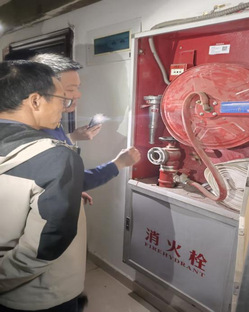 講座結(jié)束后,學(xué)院領(lǐng)導(dǎo)、丁偉濱及全體輔導(dǎo)員隨即深入學(xué)生宿舍,開(kāi)展消防安全現(xiàn)場(chǎng)檢查與指導(dǎo)。丁偉濱結(jié)合消防救援實(shí)際經(jīng)驗(yàn),對(duì)宿舍內(nèi)可能存在的用電安全、物品堆放等隱患進(jìn)行了細(xì)致提醒,并現(xiàn)場(chǎng)演示和講解了消防栓的檢查要點(diǎn)與正確使用方法,將理論講解延伸至實(shí)地實(shí)踐,進(jìn)一步強(qiáng)化了師生的安全意識(shí)和應(yīng)急操作能力。