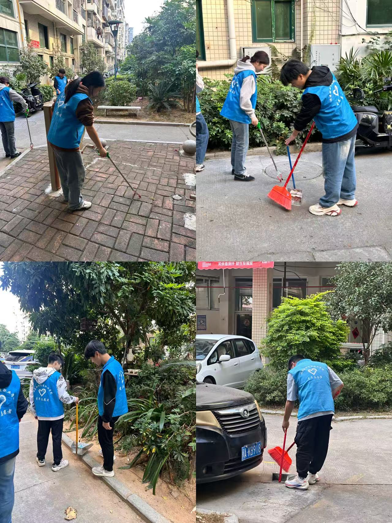 活動(dòng)前,學(xué)子們明確主干道、綠化帶、衛(wèi)生死角等清掃重點(diǎn)區(qū)域,分組領(lǐng)取掃帚、垃圾夾、垃圾袋等工具。實(shí)踐中,大家分工協(xié)作、干勁十足,有的細(xì)致清掃路面落葉雜物,有的俯身?yè)焓熬G化帶內(nèi)隱蔽垃圾,有的擦拭公共設(shè)施灰塵,不畏臟累、默契配合,成為社區(qū)里一道亮眼的“青春志愿紅”。