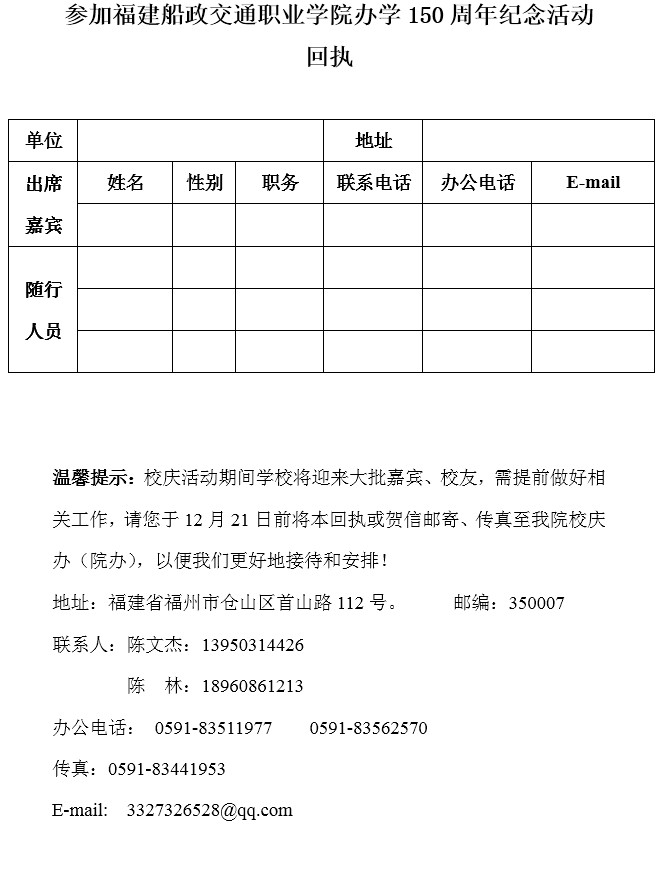 福建船政交通職業(yè)學(xué)院辦學(xué)150周年紀(jì)念活動(dòng)邀請(qǐng)函