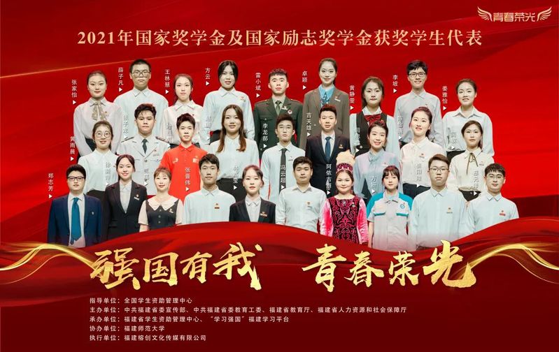 5月31日20:00,“強(qiáng)國(guó)有我,青春榮光”第三屆國(guó)家獎(jiǎng)學(xué)金福建省頒獎(jiǎng)大會(huì)在線上播出。