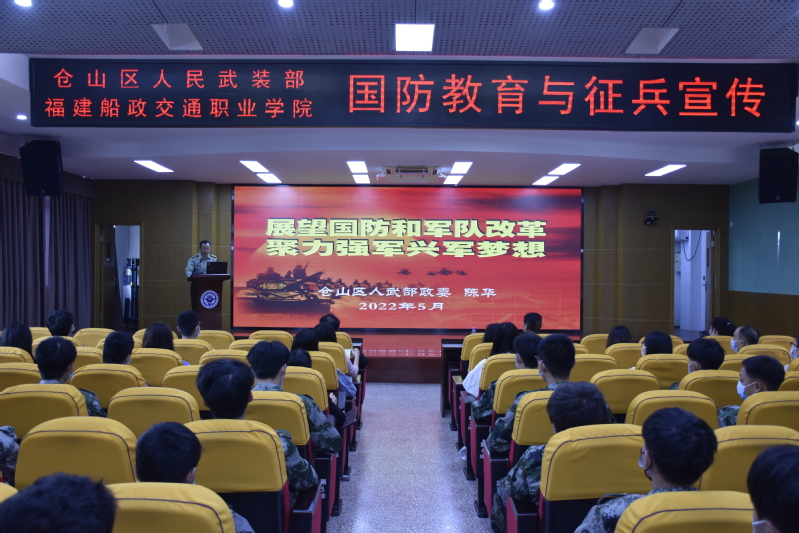為切實(shí)加強(qiáng)我院大學(xué)生國防教育、做好征兵入伍宣傳動(dòng)員工作,激發(fā)學(xué)子的家國情懷,5月12日上午,在1號(hào)樓學(xué)術(shù)報(bào)告廳舉辦了國防教育主題講座暨征兵宣傳進(jìn)校園活動(dòng)。倉山區(qū)人民武裝部政委陳華應(yīng)邀出席活動(dòng)并作專題講座,學(xué)生工作部部長王心金及各二級(jí)學(xué)院輔導(dǎo)員代表和有意參軍的學(xué)生代表200余人參加,學(xué)生工作部副部長鄧本超主持會(huì)議。
