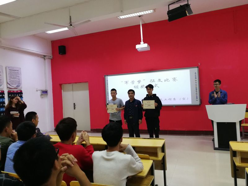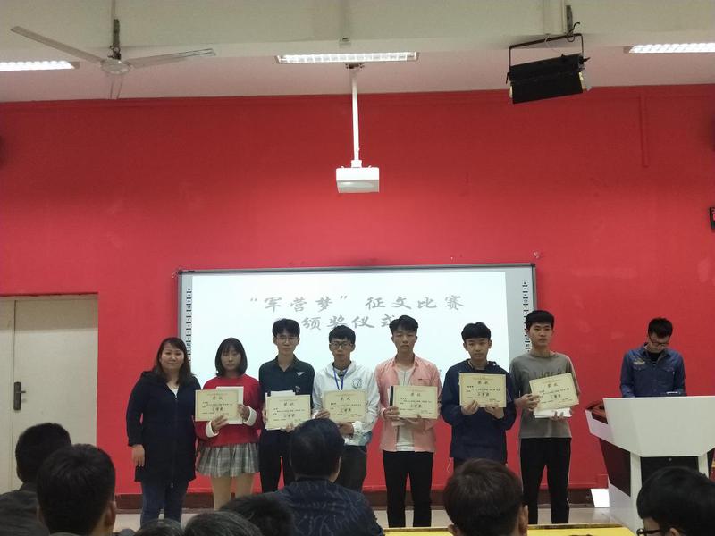 為弘揚愛國主義精神,營造愛國熱情的學院風范。2018年11月14日下午13:00在船政北區(qū)2#1-5舉行了“軍營夢”征文比賽頒獎儀式。信息系系書記孫基老師、征兵負責人唐曉軍老師以及“軍營夢”征文比賽負責人2017級輔導員黃華梅老師。本次頒獎儀式由2017級電信班唐宋杰主持。
