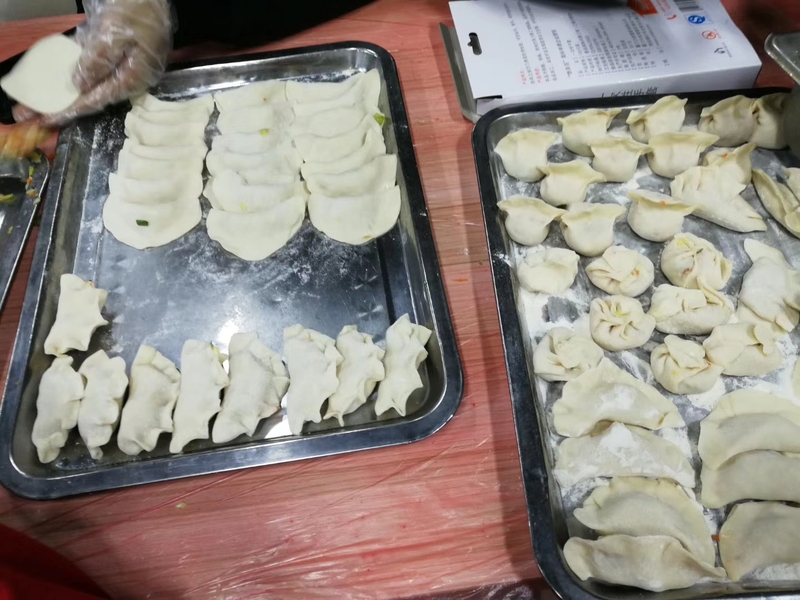 各班級同學(xué)結(jié)合南北方的習(xí)俗,有的包起了餃子、有的煮起了湯圓。同學(xué)們按照班級進(jìn)行了分組,開始了“搓湯圓、包餃子、擺造型”。大家都迫不及待地和面、搓球、搓湯圓,我們欣喜地看到,同學(xué)們個(gè)個(gè)心靈手巧,搓出的湯圓、餃子精美別致、與眾不同。班級同學(xué)分工有致,一些同學(xué)負(fù)責(zé)揉捏面粉團(tuán),一些同學(xué)負(fù)責(zé)包餡兒搓湯圓包餃子,一些負(fù)責(zé)拍照留念,一些則負(fù)責(zé)擺造型。