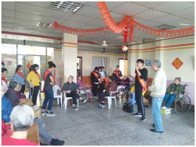 志愿與老人一同表演節(jié)目