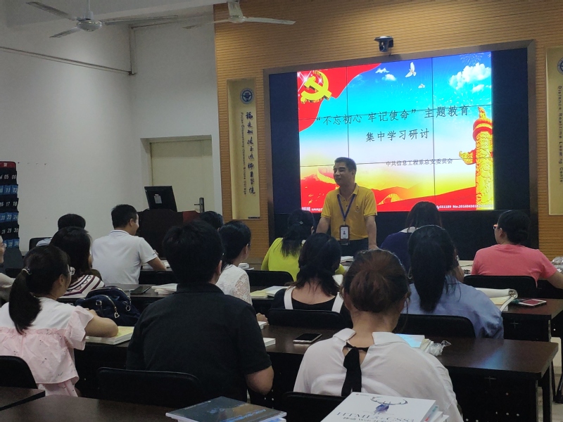 10月9日下午,信息工程系黨總支組織召開 “不忘初心、牢記使命” 主題教育集中學(xué)習(xí)研討活動(dòng),集體學(xué)習(xí)了《習(xí)近平新時(shí)代中國(guó)特色社會(huì)主義思想學(xué)習(xí)綱要》節(jié)選,黨總支孫基書記圍繞學(xué)習(xí)貫徹落實(shí)習(xí)近平新時(shí)代中國(guó)特色社會(huì)主義思想、習(xí)近平總書記關(guān)于“不忘初心、牢記使命”重要論述,以及習(xí)近平總書記在慶祝中華人民共和國(guó)成立70周年大會(huì)上的重要講話精神,帶頭進(jìn)行了發(fā)言研討。