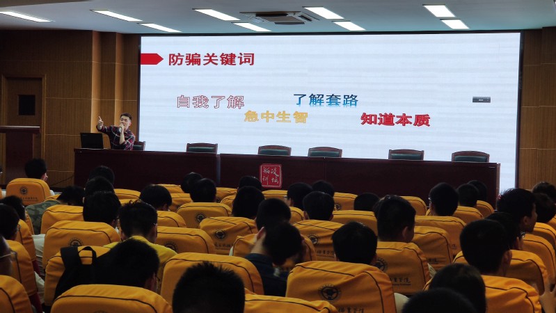 講座伊始,洪警官向同學們講解了諸如防范詐騙、校園貸、防交通事故、防意外傷害等方面的問題。通過現(xiàn)場游戲互動、列舉校園真實案例、播放典型案例視頻等方式,洪警官指出了大學生財產(chǎn)安全意識意識淡薄、容易輕信他人,導(dǎo)致錢財損失、人身安全遭到威脅的現(xiàn)狀。同時,他還向同學們詳細介紹了校園套路貸的慣用伎倆及危害性,提醒同學們不要相信“天上掉下來的餡餅”,時刻保持防范與警惕,謹防陷入五花八門的校園貸,提高警惕心和自我保護能力,遠離校園貸。