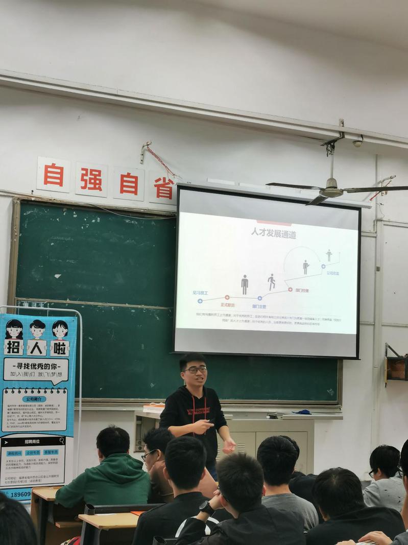隨后,陳經(jīng)理對該企業(yè)的招聘職位與就業(yè)要求,說明了各個崗位的就業(yè)方向和公司福利以及薪資待遇問題做出了詳盡的解釋,并且以提問的方式讓同學(xué)了解了自己的人生方向,什么的位置應(yīng)該做到幾年才能完成,不必好高騖遠(yuǎn)。