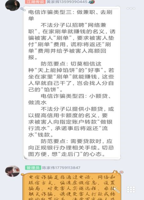 當前,全國人民正在全力投入堅決打贏疫情防控阻擊戰(zhàn)。然而一些不法分子卻利用學校開展線上教學之際,通過添加QQ群、微信群等方式實施網絡詐騙,嚴重干擾了教育系統(tǒng)師生教學工作。近日我院兩名學生就遭遇了網絡詐騙,好在系部經常開展反詐騙教育,學生警惕性高,沒有上當受騙。兩起詐騙方式幾乎一樣,疑似團伙作案。該團伙假冒警方身份,通過電話和短信進行“口頭傳喚”,同時添加了學生的微信,一步步誘導詐騙,最后以收“好處費”結束。
