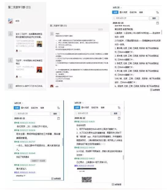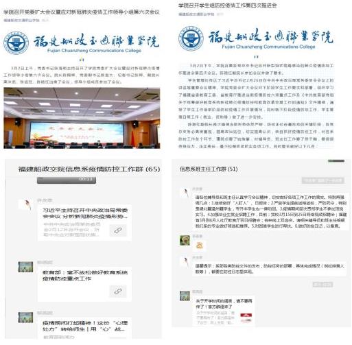 支部大部分黨員老師都兼任學(xué)生班主任工作,他們堅(jiān)持教書(shū)育人,以德為先,除了完成日常的教學(xué)工作,還與輔導(dǎo)員們一起,共同活躍在關(guān)心關(guān)愛(ài)學(xué)生的第一線。每日通過(guò)電話、網(wǎng)絡(luò)通訊工具(微信、QQ)對(duì)學(xué)生進(jìn)行疫情排查摸底,摸排所帶班級(jí)的學(xué)生狀況、關(guān)注學(xué)生的疫情數(shù)據(jù)、問(wèn)候湖北籍學(xué)生、轉(zhuǎn)發(fā)官方最新的防控信息……